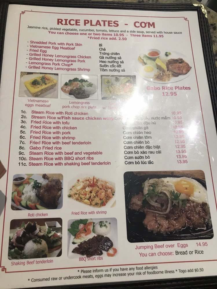 Highlights include the Gabo Vermicelli Bowl and the rich Gabo Beef Special Noodle, both receiving rave reviews from patrons. The crispy fish sauce chicken wings and flavorful crab rangoons serve as perfect appetizers, setting the tone for a satisfying meal. With a casual ambiance and quiet atmosphere, it’s ideal for family dining.